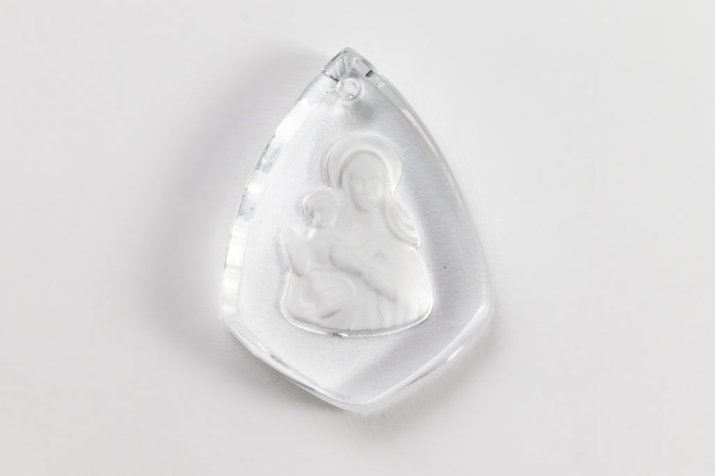 Center holds engraved image of Madonna and Child with matte texture for contrast.