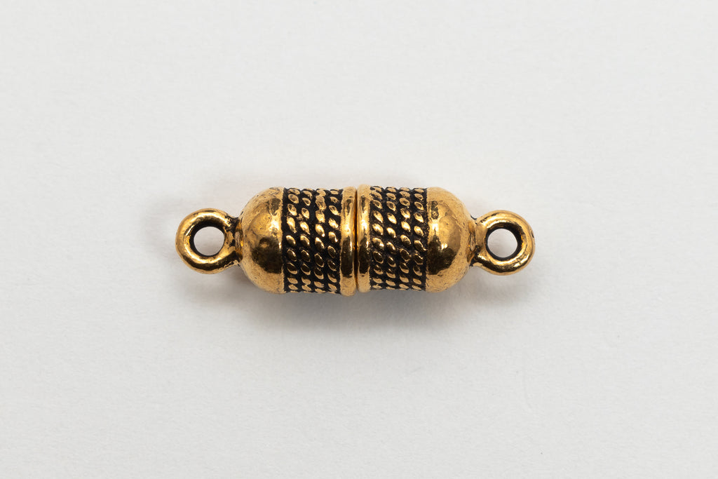 7.76mm high by 25.8mm wide barrel type magnetic clasp with wrapped rope texture.