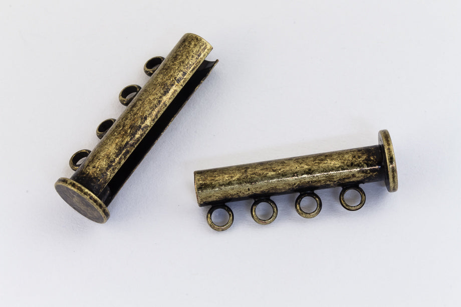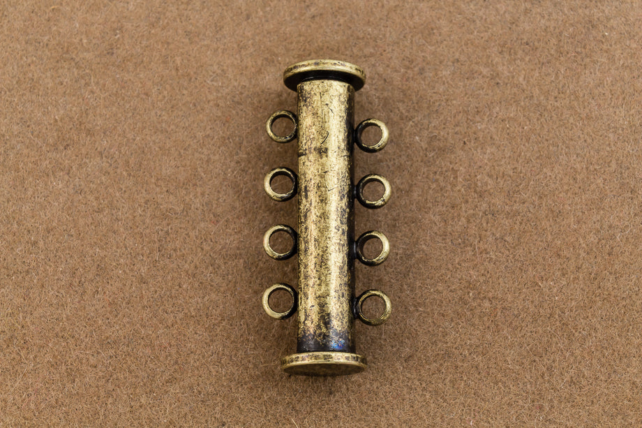 26mm x 10mm antique brass magnetic slide clasp with 4 loops on each side.