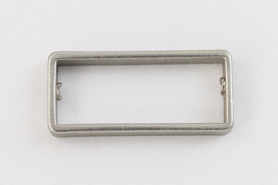 26mm x 8mm rectangle bead frame with 24mm x 6mm opening. 1mm thick, 3mm wide with 1mm holes.