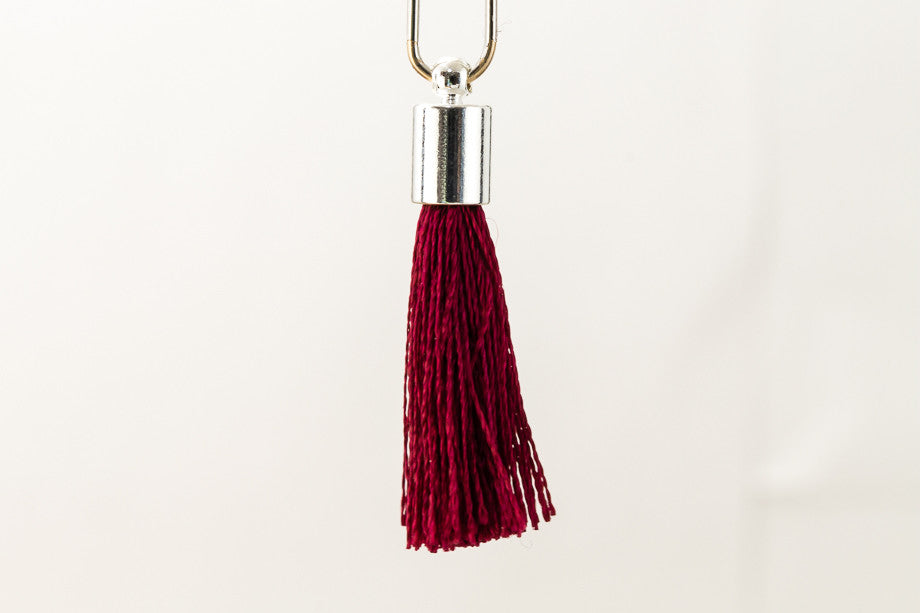 27mm- 30mm long tassel made of silk embroidery floss with nickel-free plated brass cap.