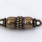 27.6mm x 8.3mm with loops on each side to accommodate beads.