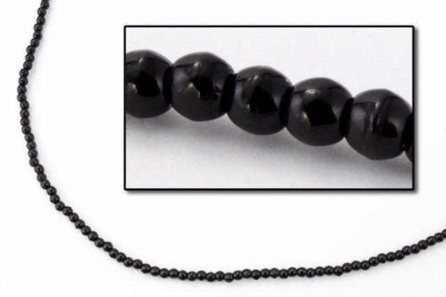 2mm pressed glass smooth round druk bead. Jet Black. Current manufacture from the Czech Republic.