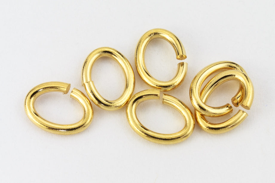 2mm x 3mm lead and cadmium free brass oval jump rings with gold color plating.