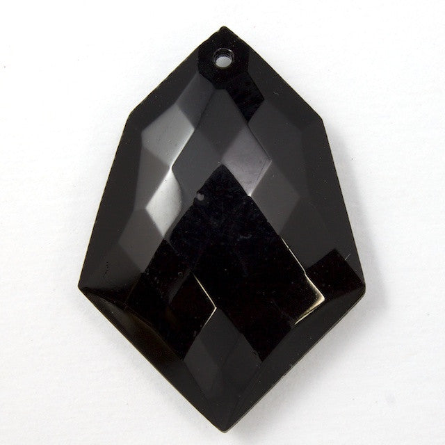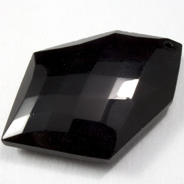 20mm x 30mm black faceted pendant with six sides and hole in top.