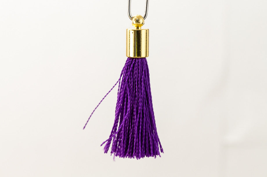 27mm- 30mm long tassel made of silk embroidery floss with nickel-free plated brass cap.