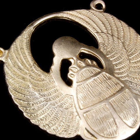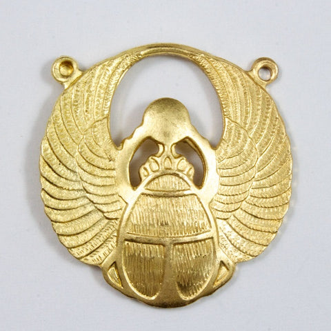 30mm raw brass scarab with upraised wings holding a sun disk.