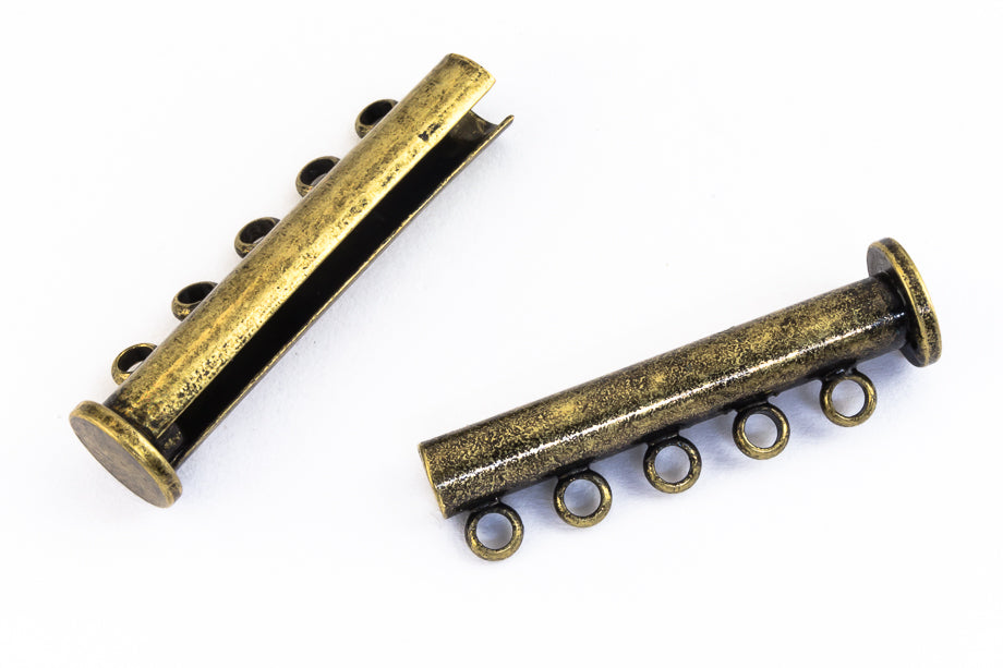 30mm x 10mm antique brass magnetic slide clasp with 5 loops on each side.