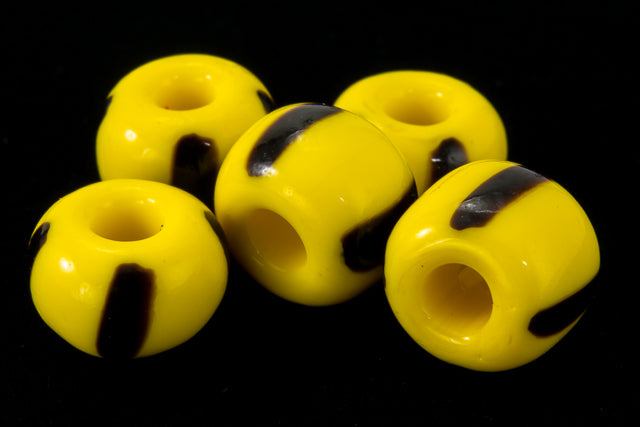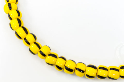 Size 34 (about 10mm) opaque yellow seed beads with black stripes.