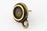 16mm x 12mm antique brass round ear post with bezel filled by 34ss light sapphire flat back rhinestone.