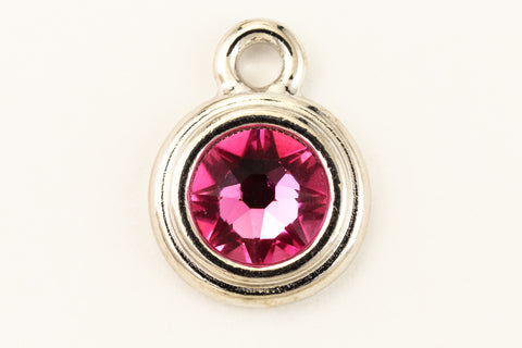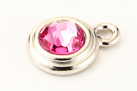 16.6mm x 11.6mm rhodium round drop with stepped bezel filled by 34ss flat back rose rhinestone.