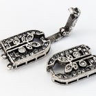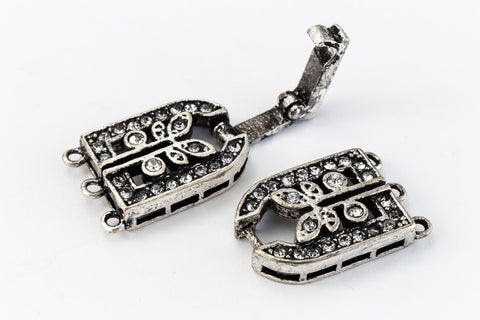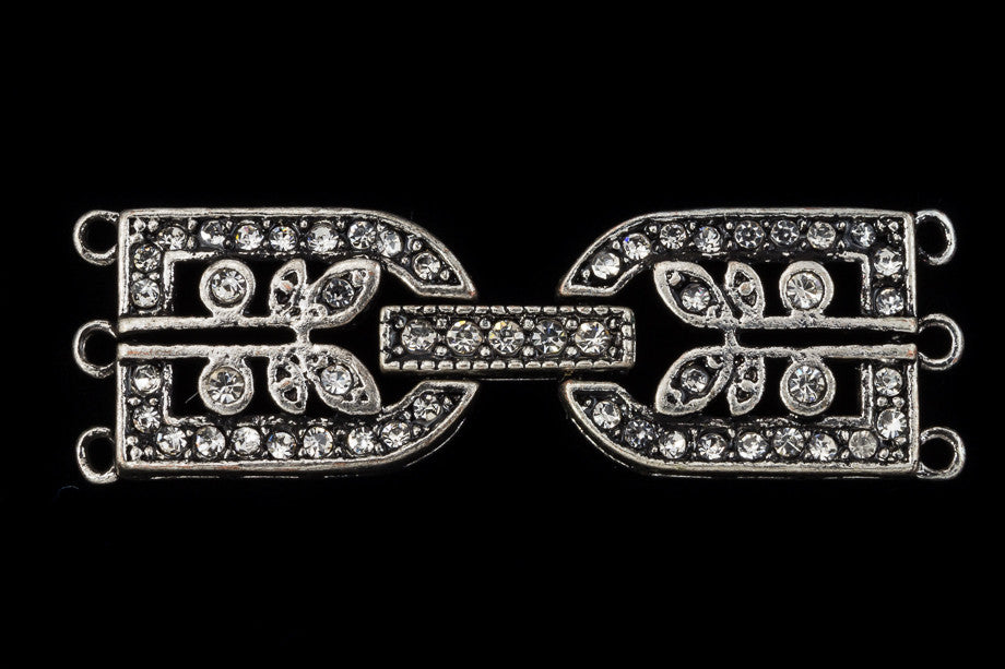 35.5mm x 11mm antique silver crystal buckle clasp with 3 loops on each side.