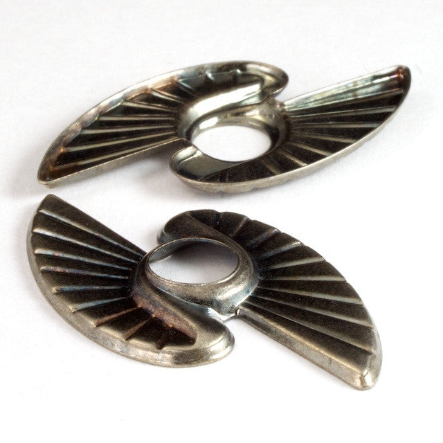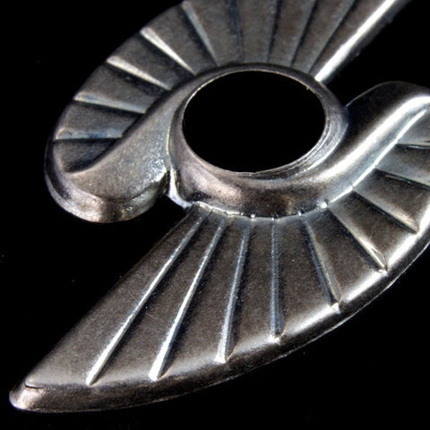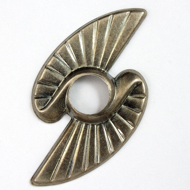 25mm x 35mm antique silver Art Deco style zig zag wing shape with 9mm hole in center.