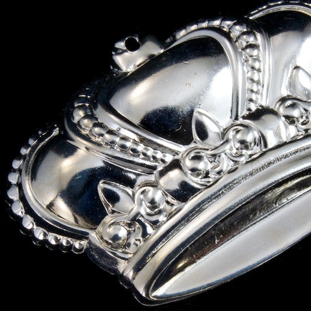 28mm x 35mm silver tone crown charm with hole at top and hollow back.