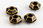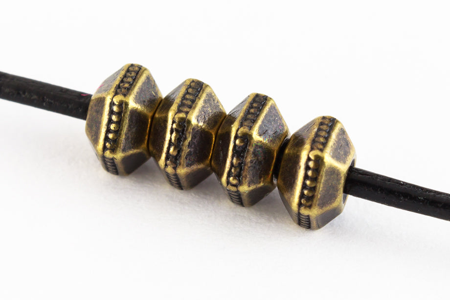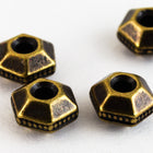 3mm antique brass faceted hexagon spacer bead with beaded detail.