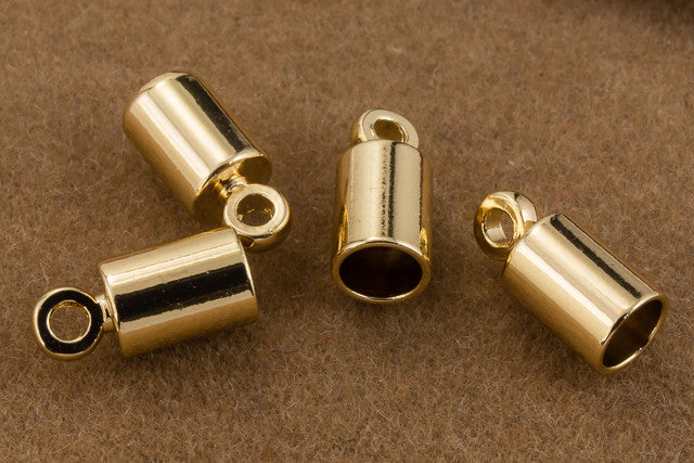 Bright gold over solid brass, plating may contain nickel. Fits up to 2mm cord.