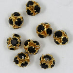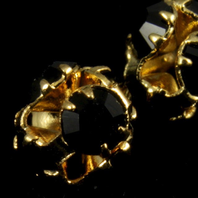 4.5mm rhinestone ball with gold tone casings and jet black rhinestones.