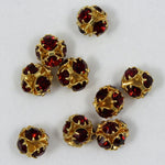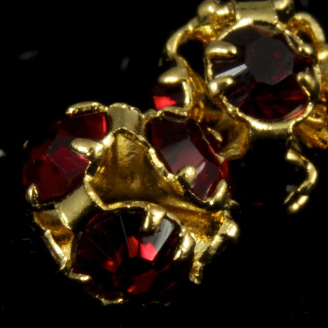 4.5mm rhinestone ball with gold tone casings and Siam rhinestones.