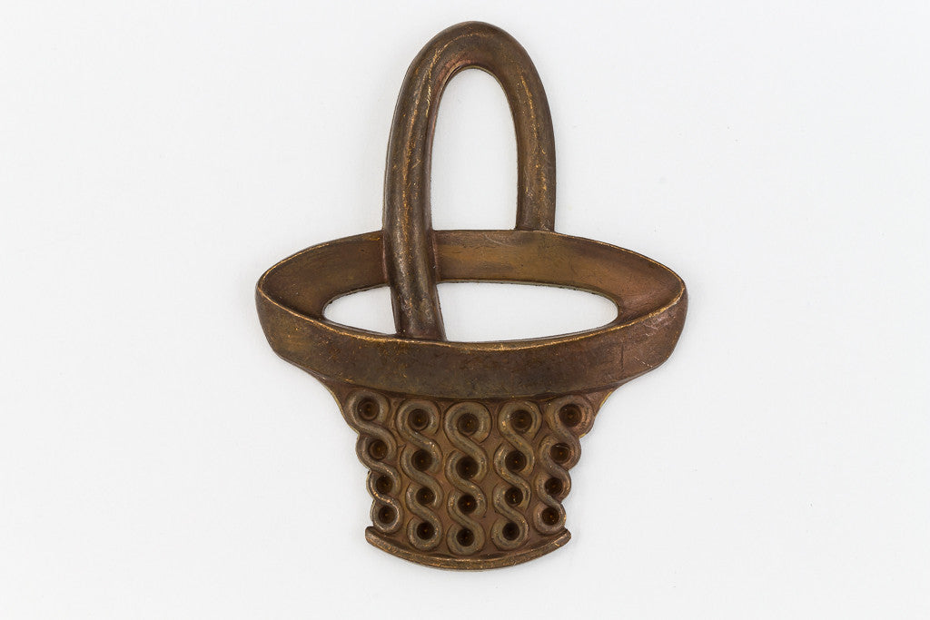 40mm antique copper flower basket with textured sides and cut-out opening.