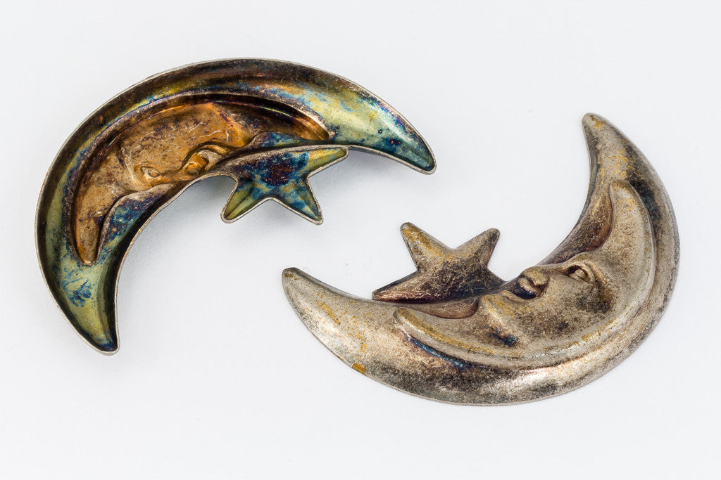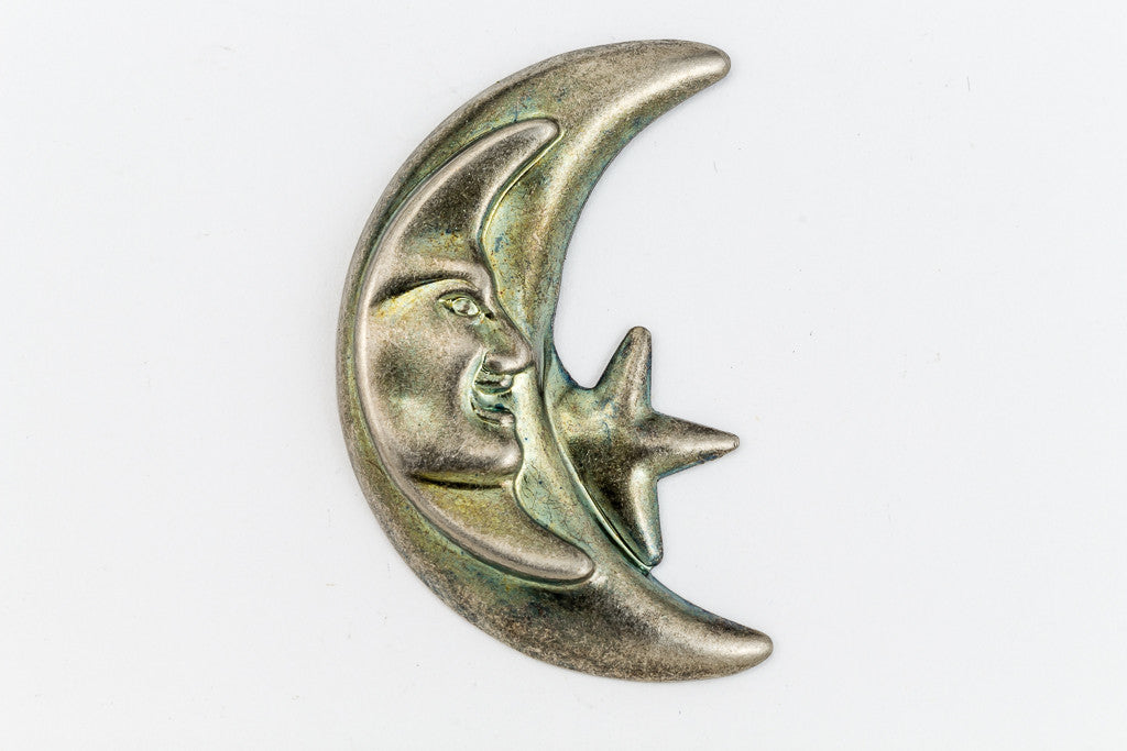 20mm x 40mm antique silver crescent moon with star peeking out.