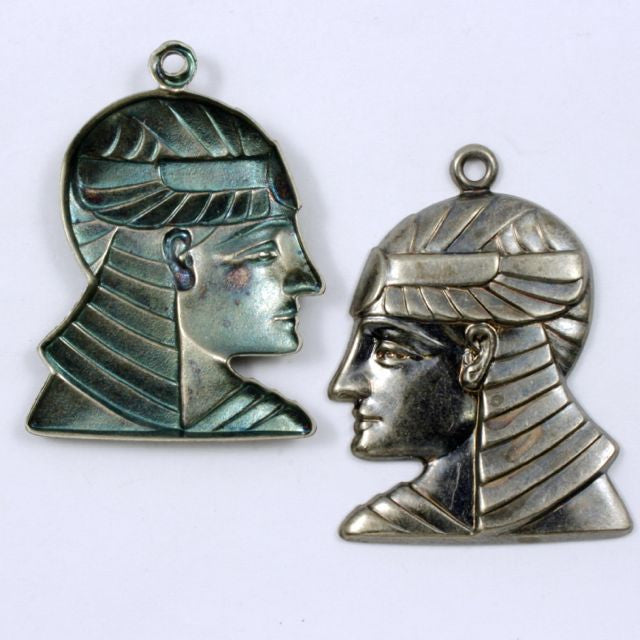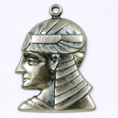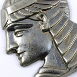 30mm x 40mm antique silver profile of an Egyptian Pharaoh with loop at top.