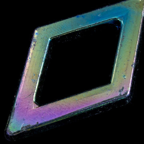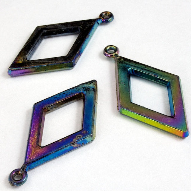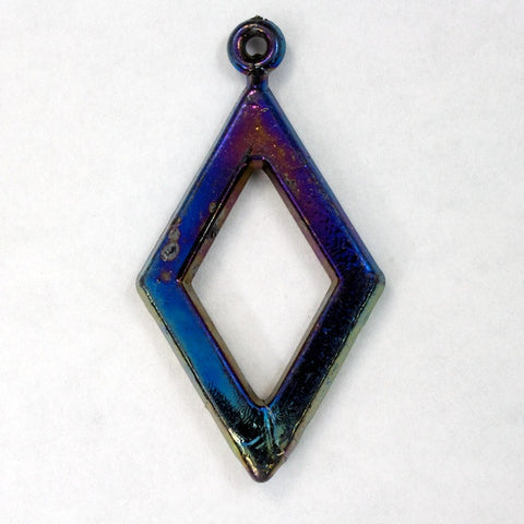20mm x 40mm dark iridescent open diamond shape pendant with loop at top.