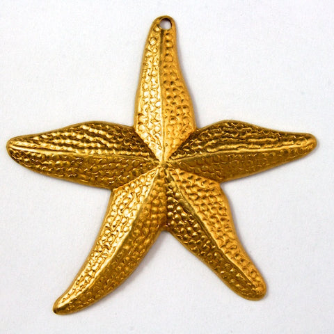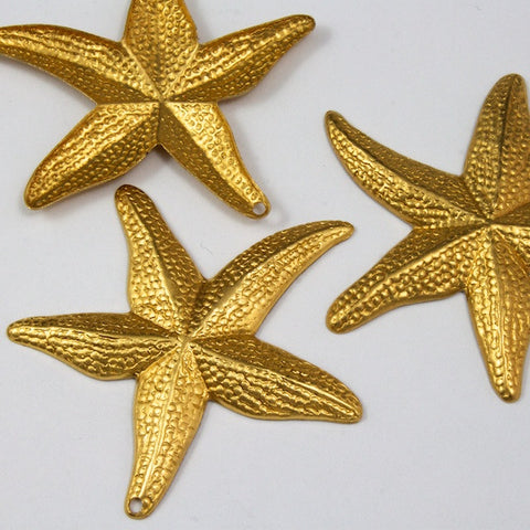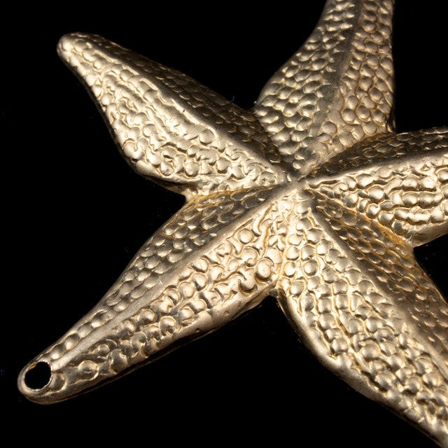 40mm raw brass textured Sea Star (Starfish) charm with hole in top.