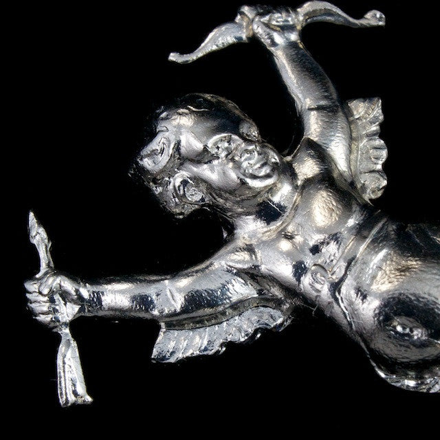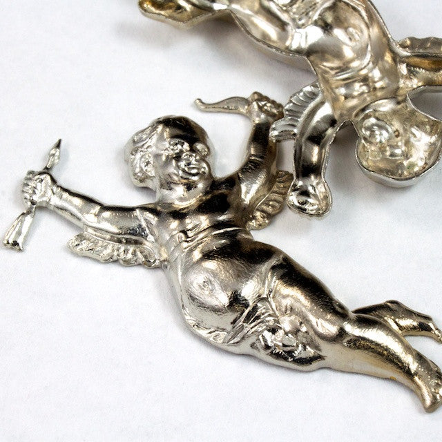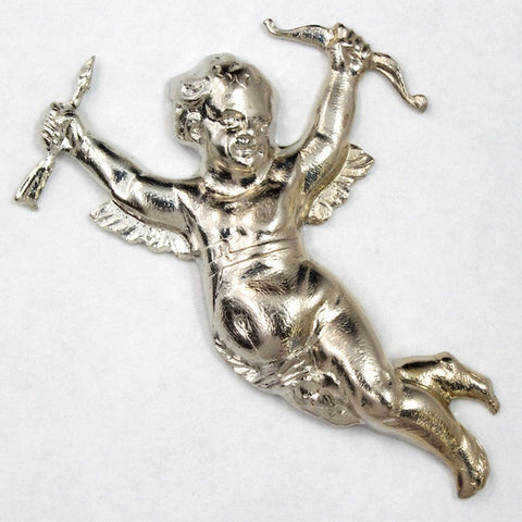 40mm silver tone baroque cupid with bow and arrow.