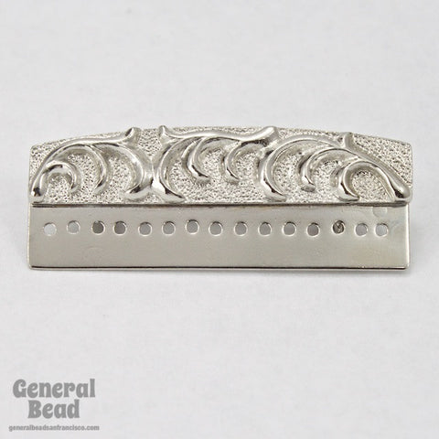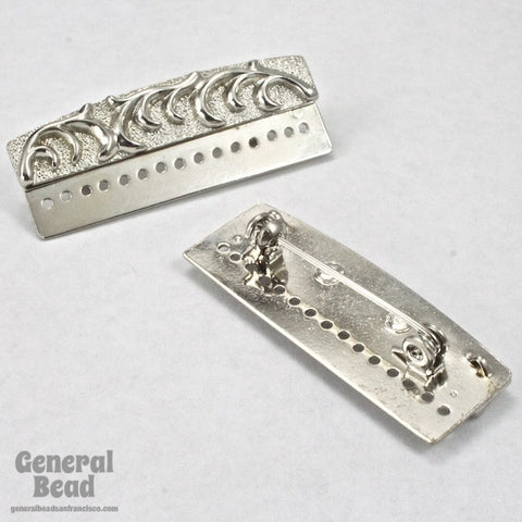 15mm x 40mm silver tone decorative bar pin with 15 holes to attach beadwork.