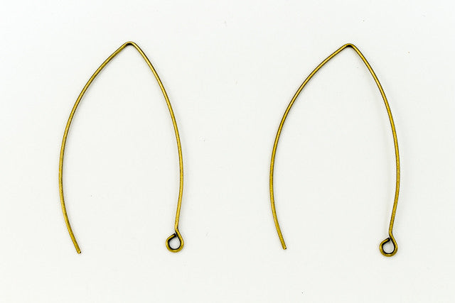 Antique brass 20 gauge eye-shaped ear wire with loop.