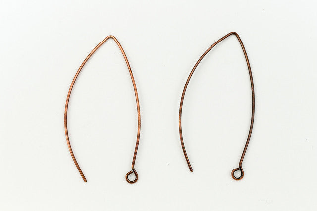 Antique copper 20 gauge eye-shaped ear wire with loop.