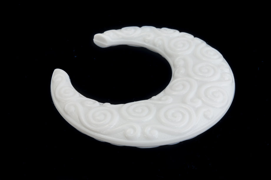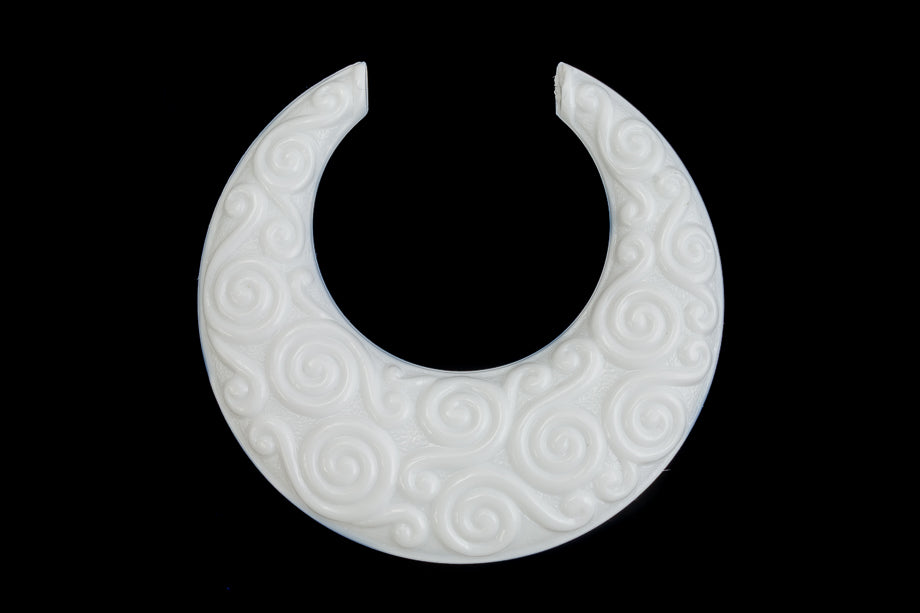 46mm opaque white incomplete hoop with raised spiral decoration.