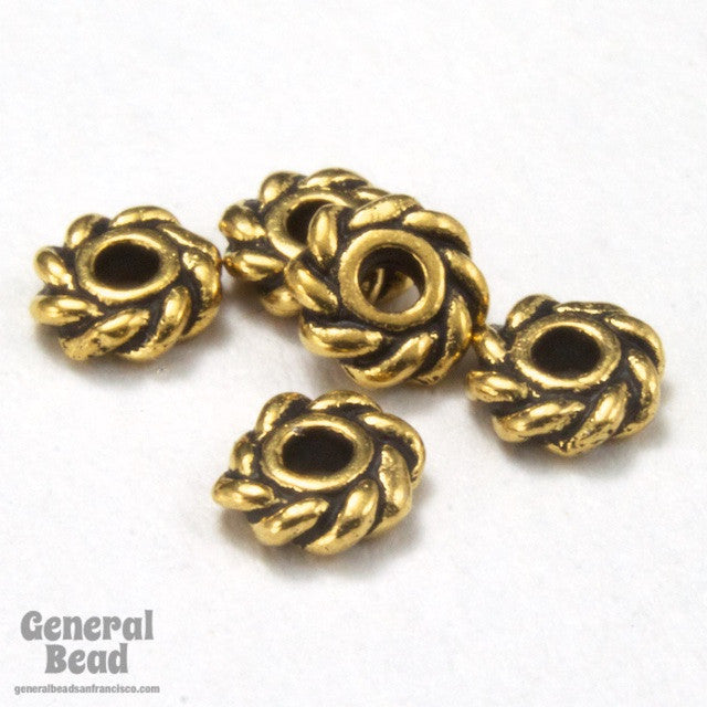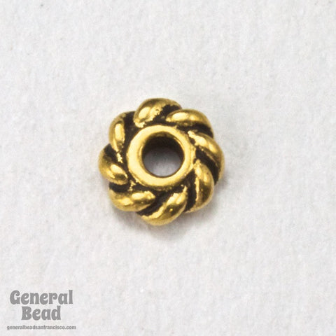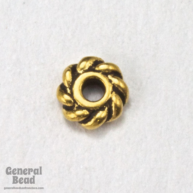 4mm antique gold twist heishi spacer bead with 1mm hole.