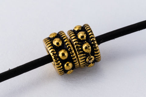 4mm antique gold round Rococo style heishi bead with 1.25mm hole.