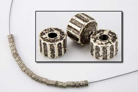 4mm x 2.5mm antique silver ridged drum bead.