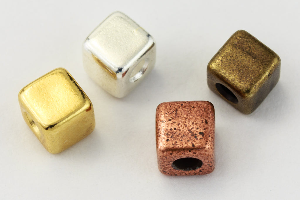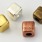 4.25mm bright silver smooth cube bead with 1.5mm hole.