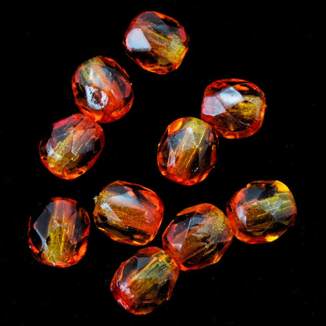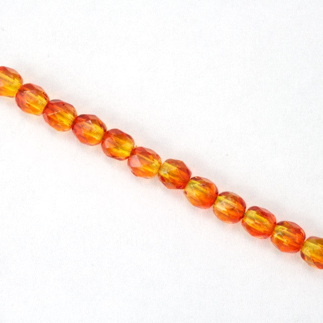 4mm Transparent Orange/Yellow Swirl Fire Polished Bead (50 Pcs) #GBB096