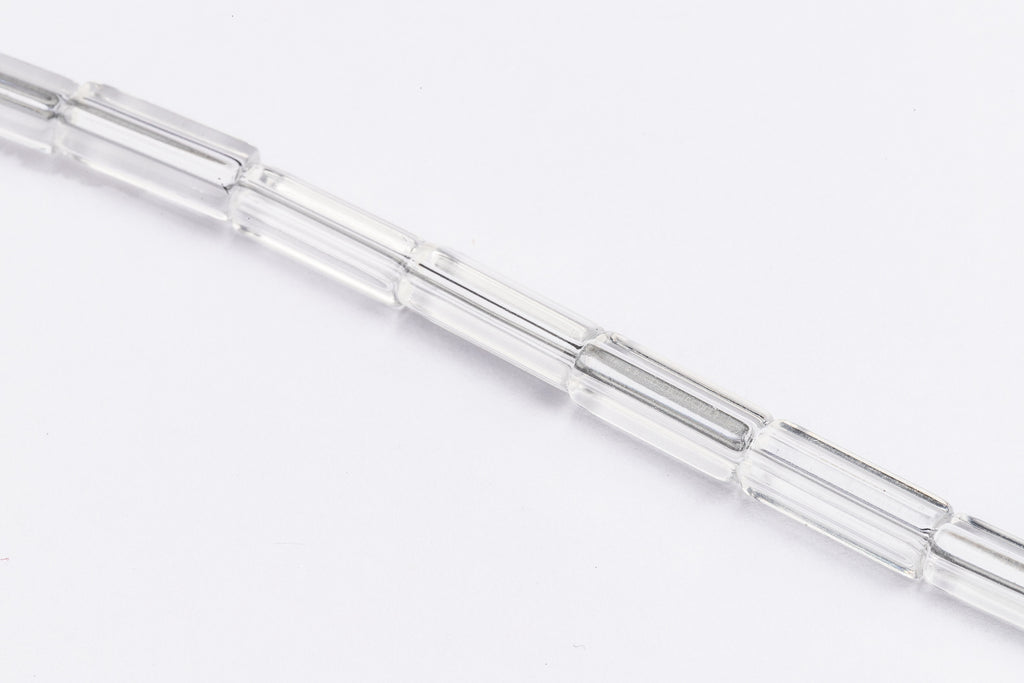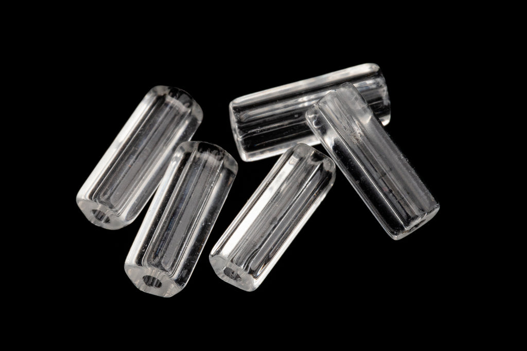 3.82mm x 10.09mm transparent crystal five sided "Satina" or "Atlas" style cylinder with lengthwise hole.
