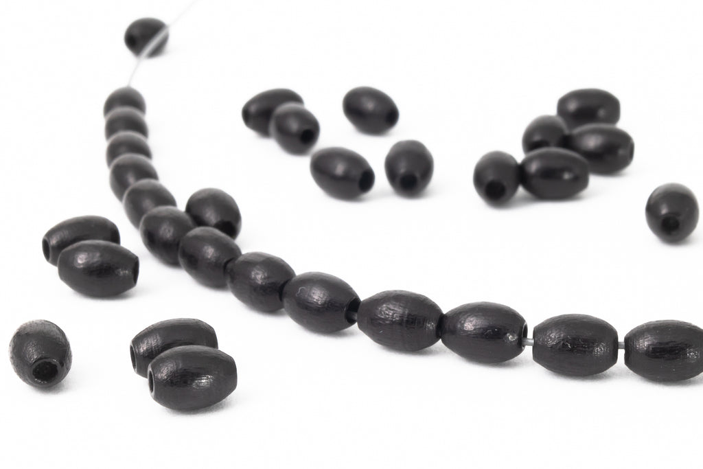 4mm x 6mm black dyed oval wood bead with 1mm hole.