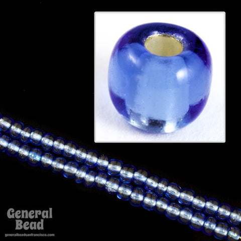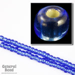 Size 5/0 silver lined sapphire seed bead.