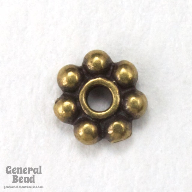 5mm antique brass beaded daisy spacer. Center hole is 1mm.