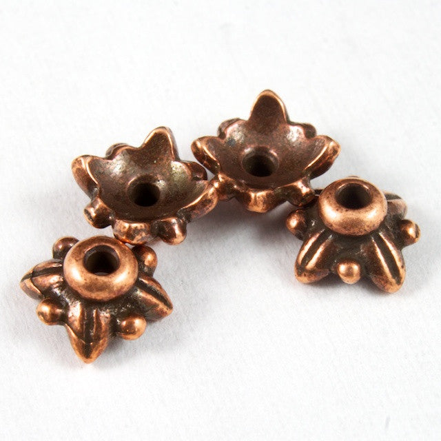 5mm antique copper leaf shape bead cap with 1mm hole.