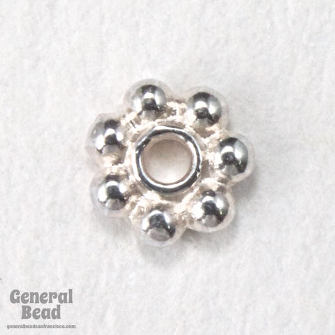 5mm bright silver beaded daisy spacer. Center hole is 1mm.