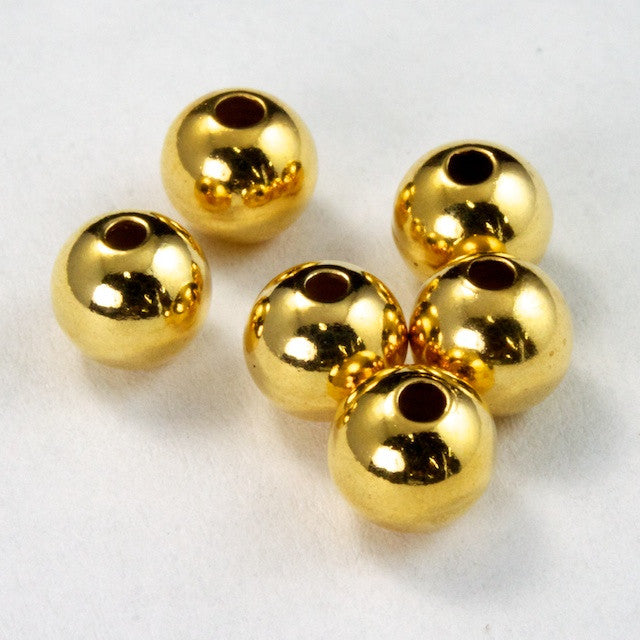 5mm round metal bead with gold plating and .5mm hole.