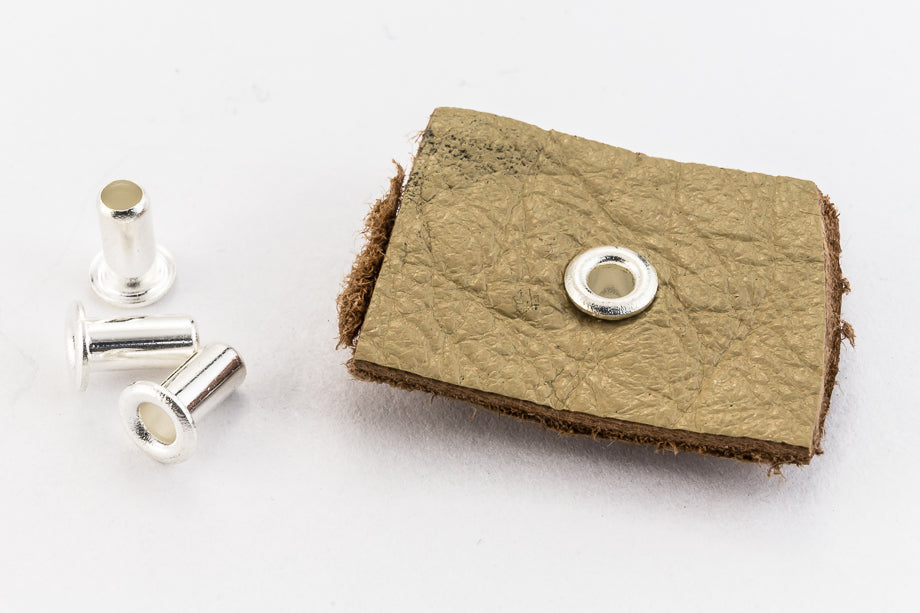 5mm x 2mm brass eyelet with bright silver plating.