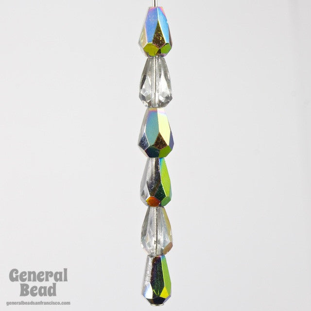 5mm x 7mm glass faceted teardrop with vertical hole.