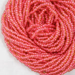 Size 6 pink lined amber seed beads.