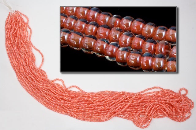 Size 6 salmon lined crystal seed beads.
