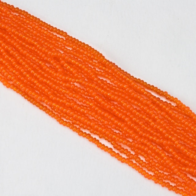 Size 6 transparent tangerine seed beads.