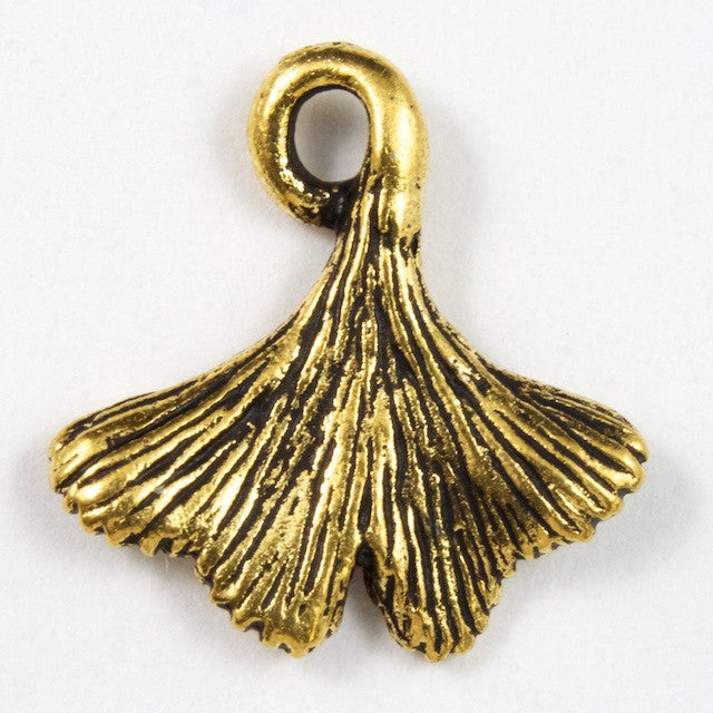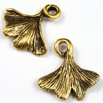 6.75mm x 15mm antique gold gingko leaf charm with detail on both sides.